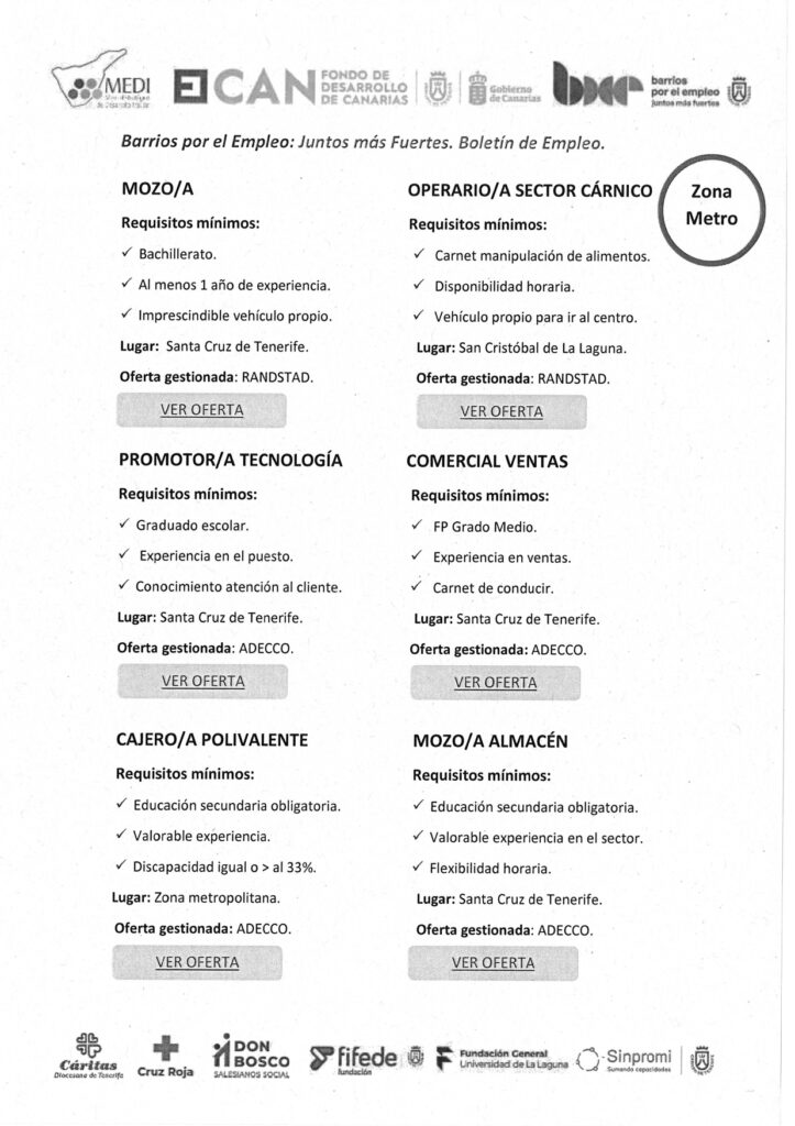Consulta aquí todas las ofertas recogidas en el boletín semanal de empleo que elabora el equipo de ‘Barrios por el Empleo: Juntos más Fuertes’: Desde BXE: J+F, seguimos trabajando con entusiasmo para brindar herramientas que transformen vidas.El programa ‘Barrios por el Empleo: Juntos Más Fuertes’ está enmarcado dentro de la ‘Agenda Canaria de Desarrollo Sostenible […]